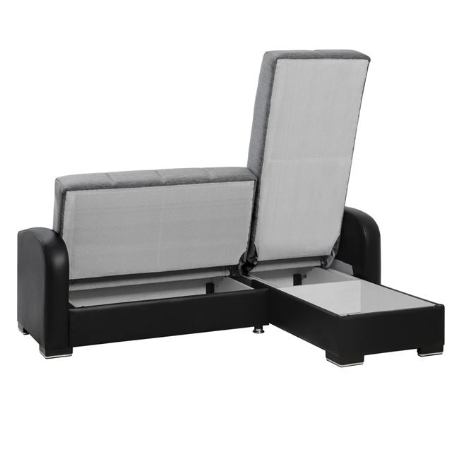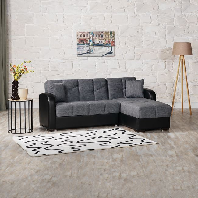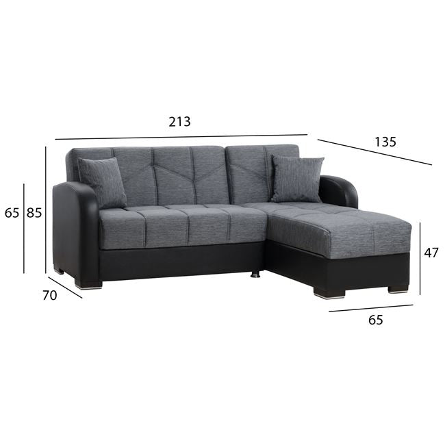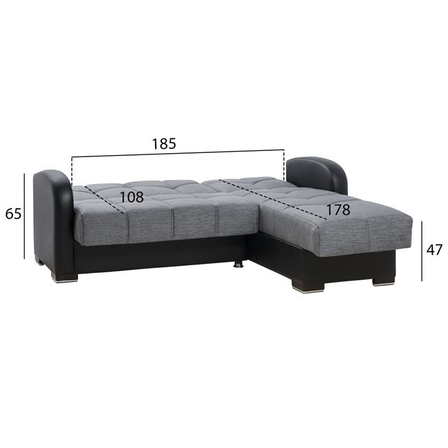 Γωνιακός καναπές/κρεβάτι Emely Γκρι με Μαύρο PU HM3105.01 213x135x85 εκ.
